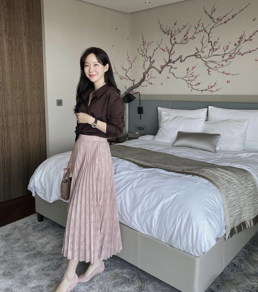 尤其是和衬衫搭配的时候,气质的衬衫,配上高腰百褶裙穿搭,利用高腰裙更好地提升腰线的位置。将衬衫塞在腰间,更有助于提升腰线,小个子女生这样穿也能显高。