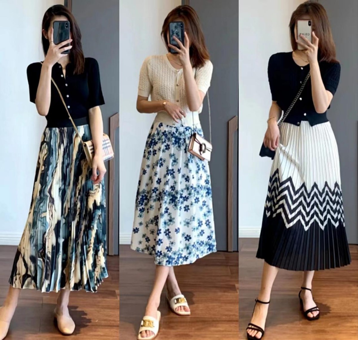 经典的黑色或米白色的奶奶衫,搭配印花长半裙或百褶裙都不会出错,明了的腰线,纤细的腰围,格外显眼,日常出街或上班皆可。