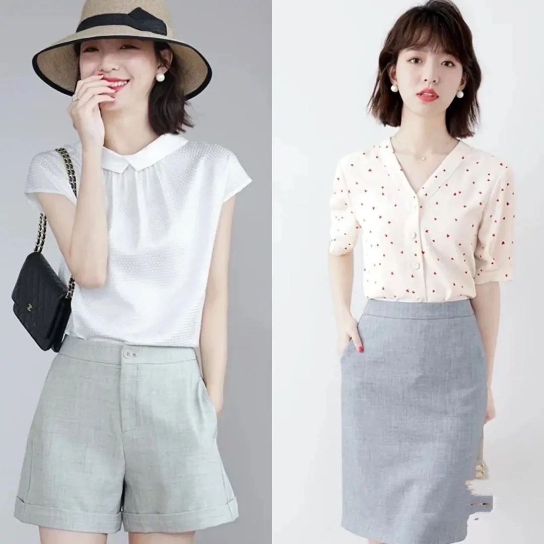 加入印花元素的衬衫,V领设计恰到好处,刚好可以露出精致的锁骨,简约清爽又不失时尚。虽说基础款单品,融入小细节点缀,才是奔四女人所追求的精致与美好。