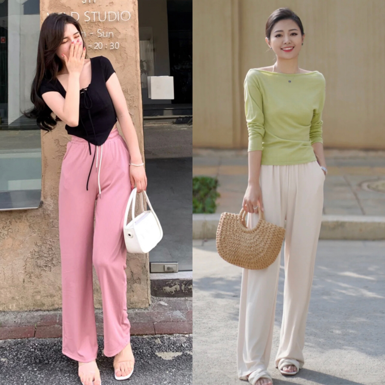 让肌肤感到呼吸的冰丝面料,在夏季也是很受追捧的。垂坠感十足的冰丝阔腿裤,将整个腿型都隐藏在裤子下面,无论你是X型腿、O型腿还是XO型腿,阔腿裤都能够轻松改善不足,穿出随性又慵懒的时髦气息,让你在感受到夏季最令人愉悦的心情。