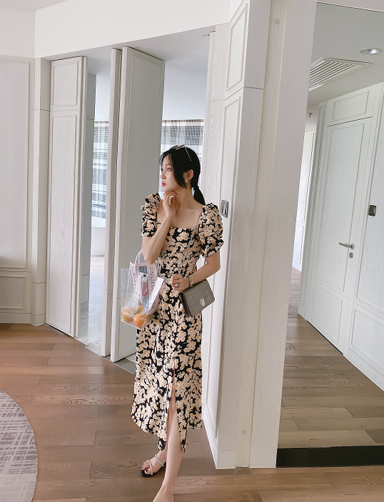 还有裙摆开叉的设计,相比全包裹式的裙摆,开叉裙明显要更凉爽轻盈许多,在行走间可以无意识的露出更多腿部肌肤,非常神秘又吸睛,而且开叉的设计也不至于会暴露腿粗的缺陷,反而可以起到一定的显瘦作用。