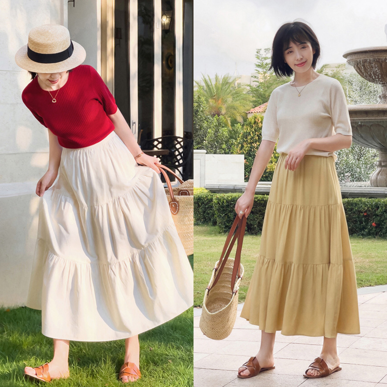不扮嫩却非常减龄的半身蛋糕长裙,款式版型层次感十足,而且拼接款式可以更好地隐藏身材问题,给人一种十分甜美淑女的气质。下图中的这种阔摆设计的蛋糕长裙就很适合40岁+女人入手,既有蛋糕裙的甜美,又不会太稚气,40岁的女人穿上完美演绎轻熟风!