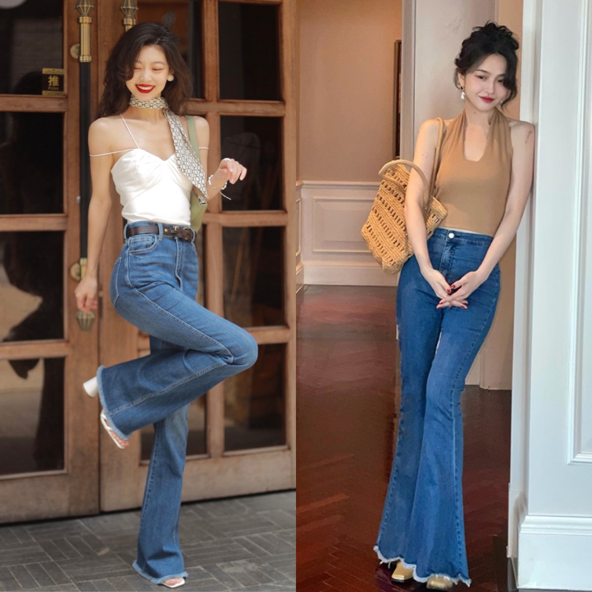 像下图中的牛仔喇叭裤就是很不错的选择,结合修身的上裤腿,勾勒出臀部曲线感,与小吊带搭配性感还有摩登范!推荐大家在挑选吊带时选择自带胸垫的免穿bra款式,没有束缚穿起来更加舒适零负担,夏日绝佳选择!