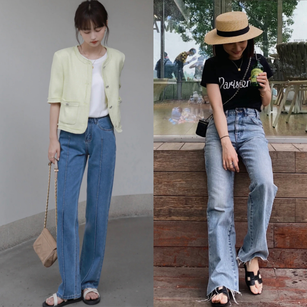 2)选择直筒裤,显瘦显腿直