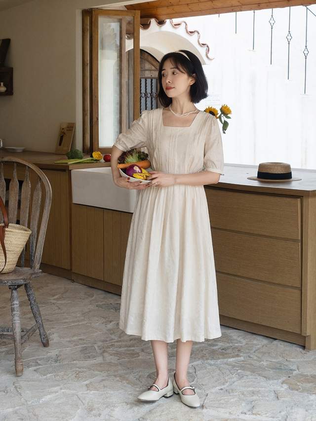 可以借鉴一下这位时尚博主的穿搭风格,她选择了奶油杏色连衣裙来穿,这条连衣裙是以浅色为主,穿在身上之后会给人一种简约大气的感觉,不会觉得稚嫩,也不会觉得老气。