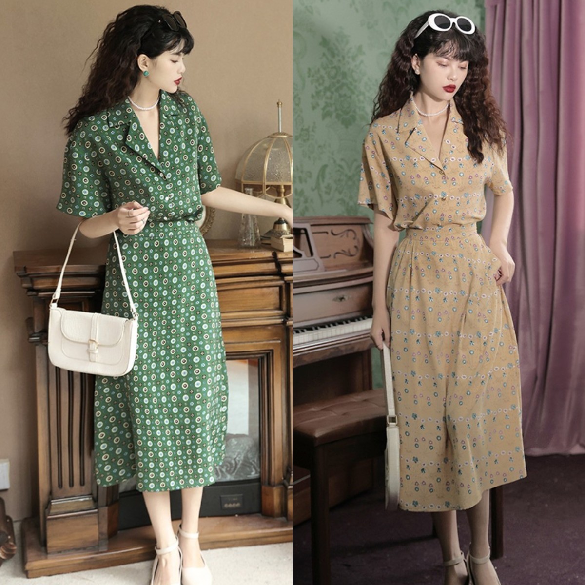 有些套裙的色彩搭配比较单一,穿起来给人一种空洞枯燥的感觉。那不妨选一些带有复古式印花、田园风小碎花或扎染的套系裙子,这种套裙的上衣一般会搭配纯色款来突出重点。这种自带亮点的套裙,穿上就是妥妥的氛围感美人。
