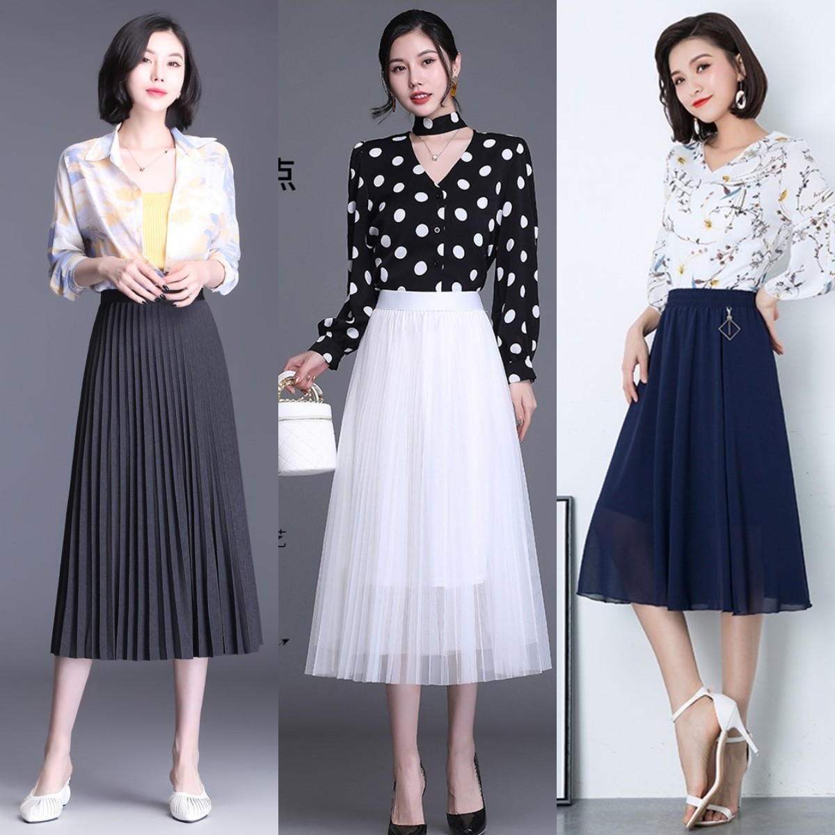 如果觉得纯色与纯色的搭配太过于单调,还可以试试纯色与多色元素的组合,在视觉上打造出“一繁一简”的效果,更能打破纯色系的单调沉闷,让你的造型看起来更加吸睛养眼。30岁以上的女性,可以试试印花衬衣、波点衬衣与百褶裙的搭配,更能打造出法式风格的效果,让你美到骨子里。