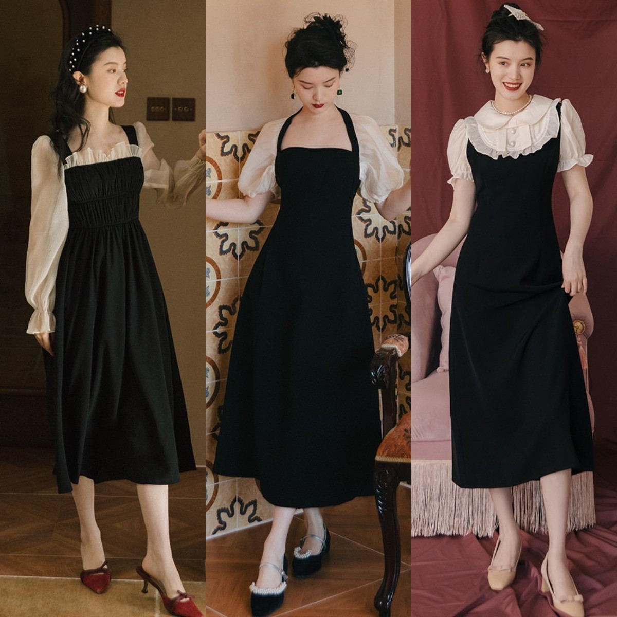 最后,我们还可以根据赫本裙的材质挑选。要想穿出更具有新意的造型,我们不妨尝试下图中的这种选用了“网纱拼接”材质的赫本裙。既能利用材质相撞加强设计感,又能通过网纱的设计增强透气感,同时兼具了实用性与时尚感,夏季穿着稳赚回头率。