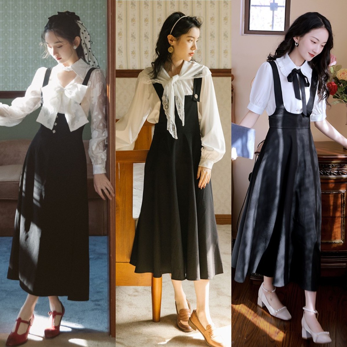 而在赫本裙的款式挑选上,我们则可以根据自己的风格路线来决定。要想穿出优雅且减龄的风格,那就可以尝试一下背带赫本裙。背带元素可以与上衣进行叠穿,既能加强上半身的层次感,又能打造出乖巧又不失优雅的风格。