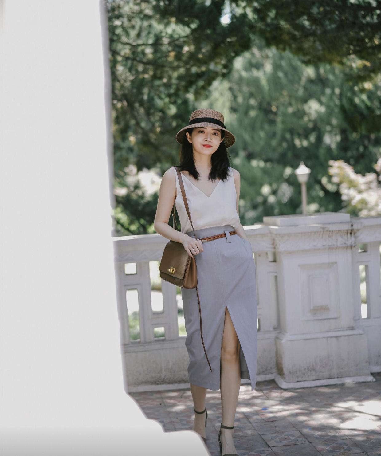 对于日常出门的穿搭来说,炎炎夏日要想穿得清爽又舒适,那么适当的露肤是很有必要的,对于身材苗条的女性而言,可以选择吊带+开叉半身裙的组合,吊带上衣可以露出纤细的手臂和性感的肩颈线,女人味十足,而开叉半身裙在保守中又透露出一丝小性感,也能起到显腿细长的作用,时尚感非常强。