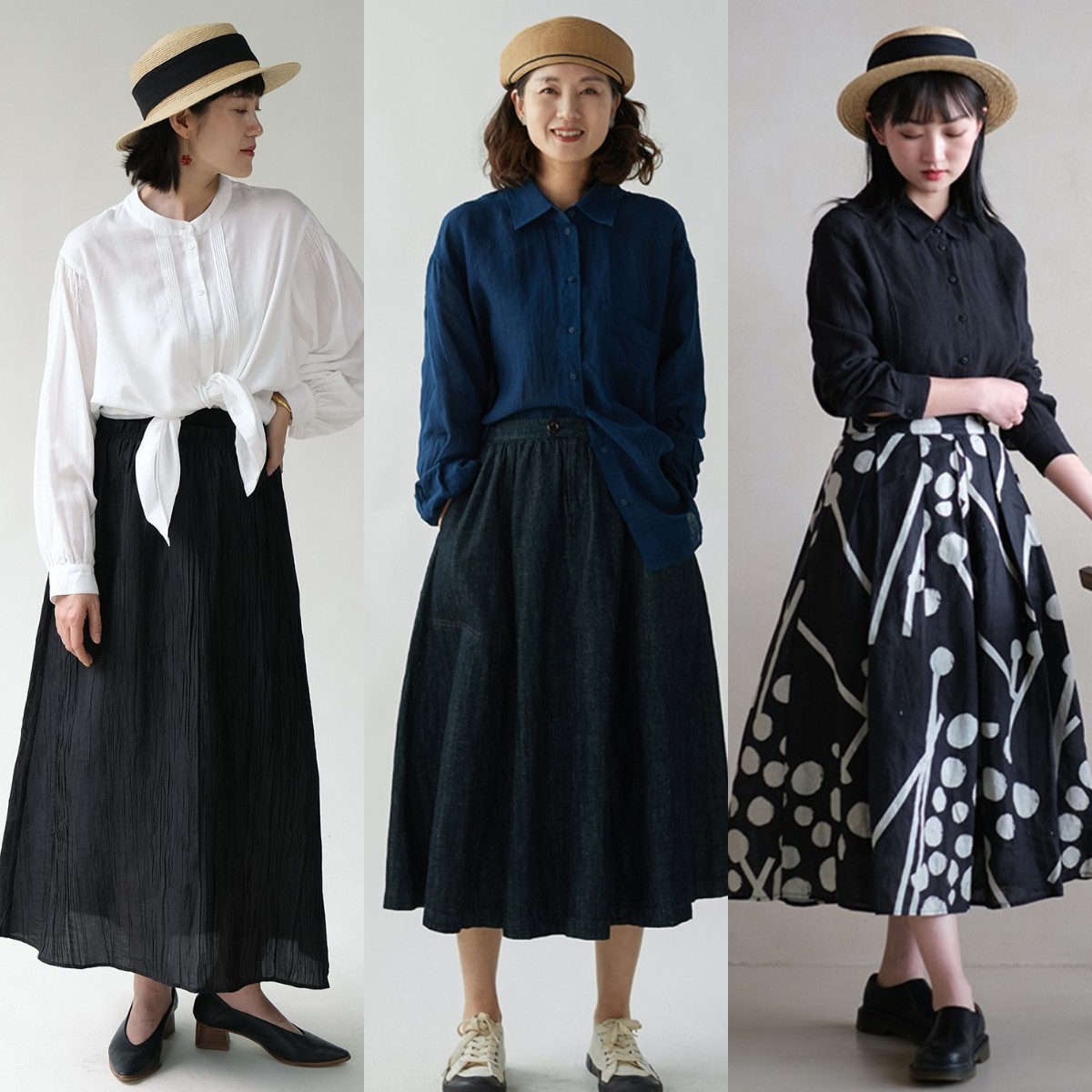 夏季在挑选半身裙时,我们可以先根据材质入手。要想让你的夏季穿搭,看起来更加灵动飘逸,推荐你尝试质感柔软一些的半身裙,像是亚麻半身裙、雪纺半身裙以及真丝半身裙等。