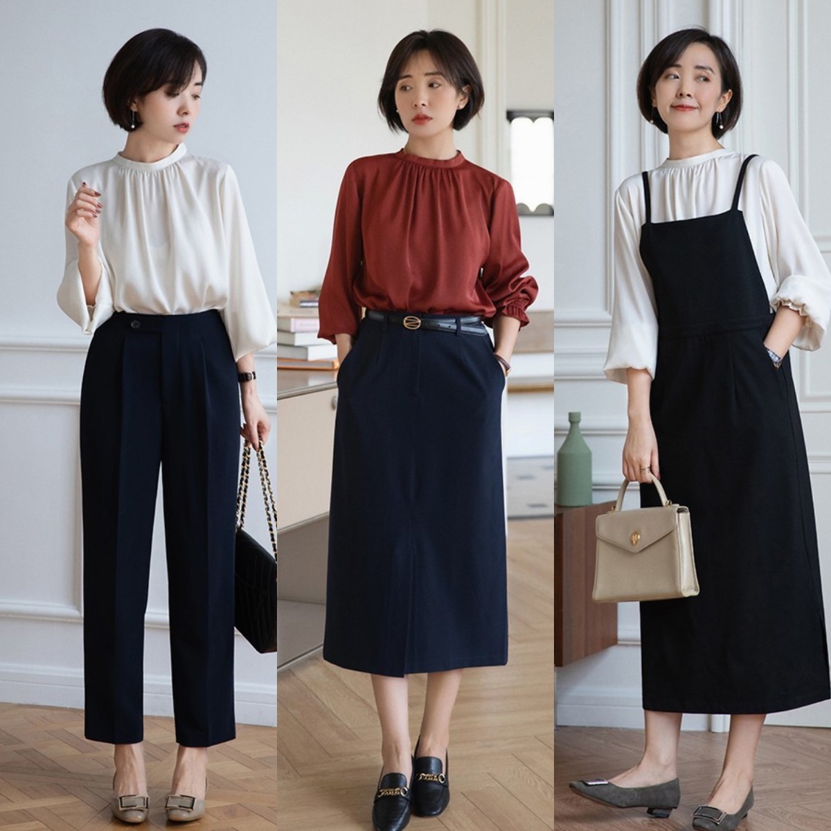 而要想穿出更加高级的风格,推荐你试试下图中的这种选用了“立领、压褶”设计的衬衣款式。这种款式的衬衣降低了衬衣的正经感,不仅能穿出温柔知性的魅力,还能利用宽松的版型很好地修饰身形,苹果型身材的姐妹也能轻松驾驭。