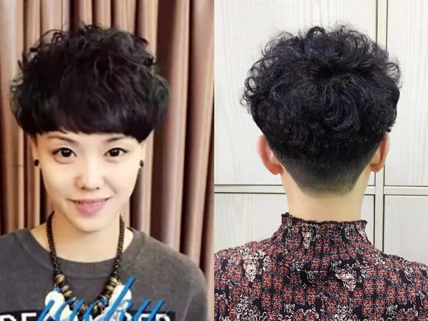 这种短发有别于传统经典款的类型,而是把蘑菇头的发型与烫发结合,什么脸型都适合。唯一的缺点就是需要经常修剪轮廓,每隔三四个月就要烫一次头顶。但发型效果很时尚,又好打理,关键是显年轻。
